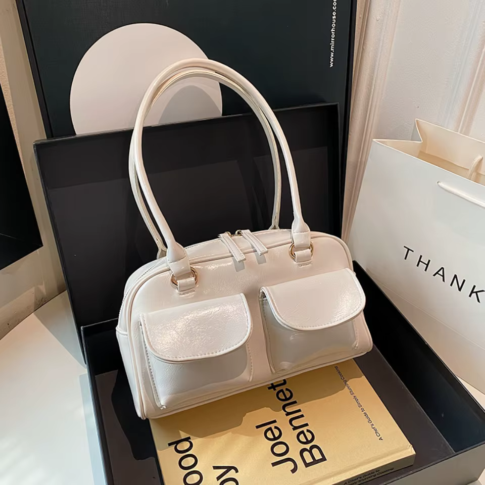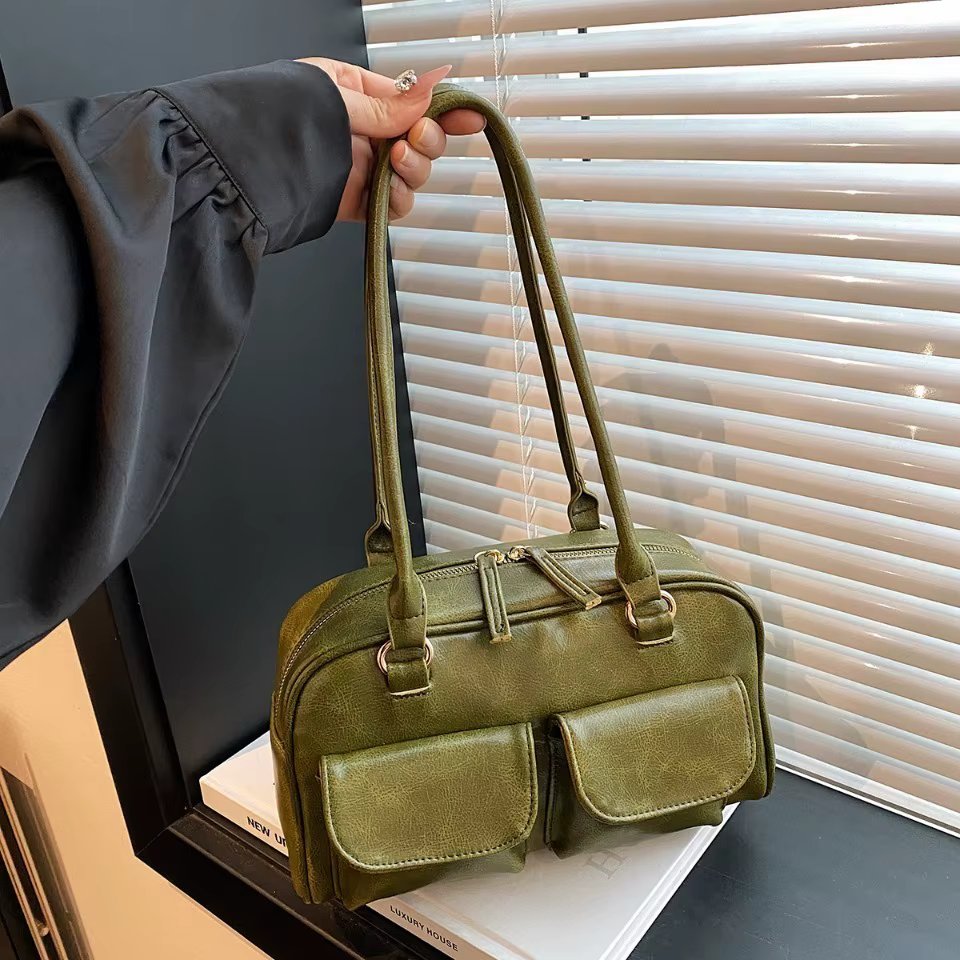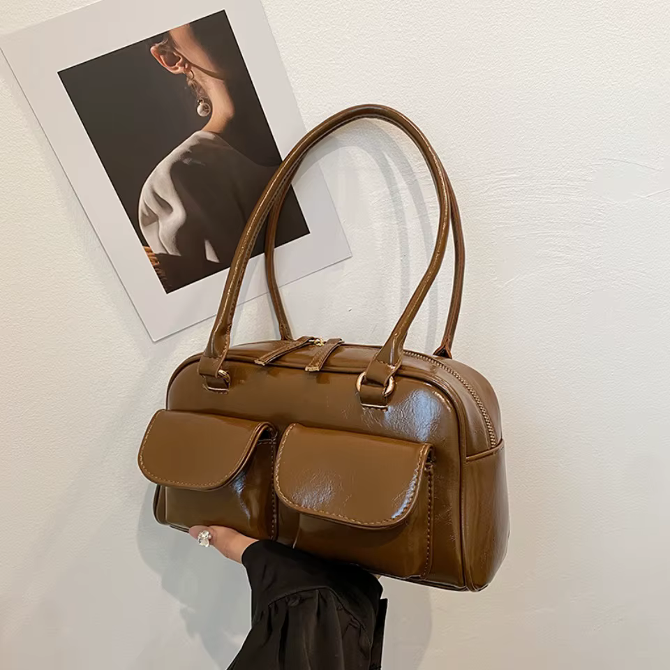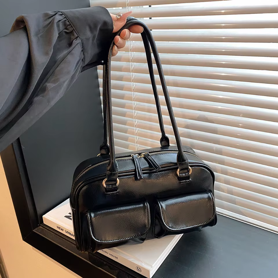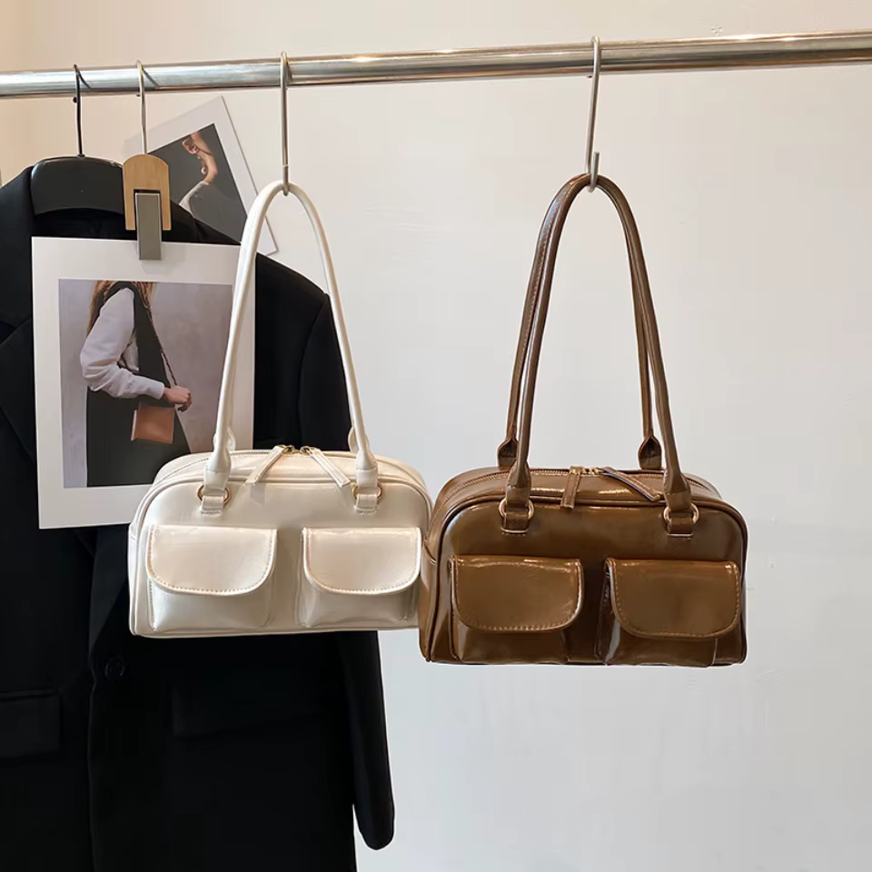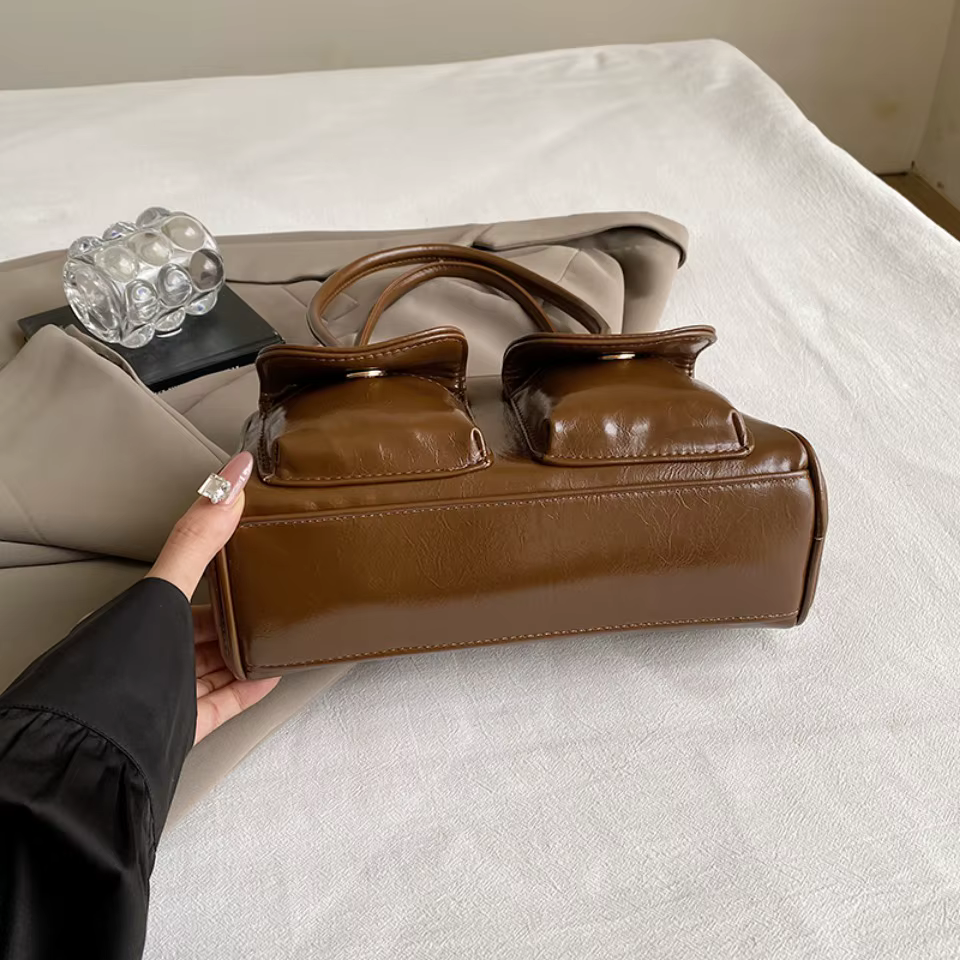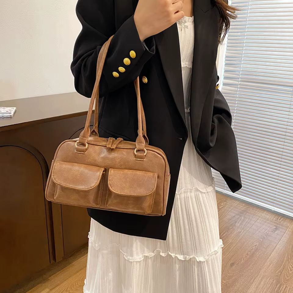 Vintage Women Business Shoulder Bags Simple Ladies Commute Tote Bag Pu Leather 2 Pocket Chic Female Underarm Hand Bag Handbags