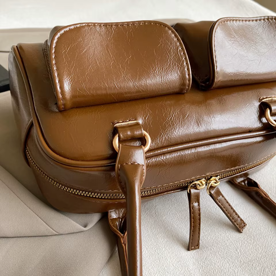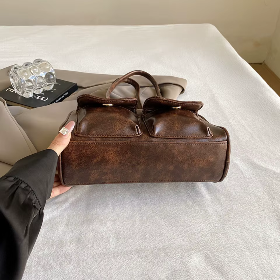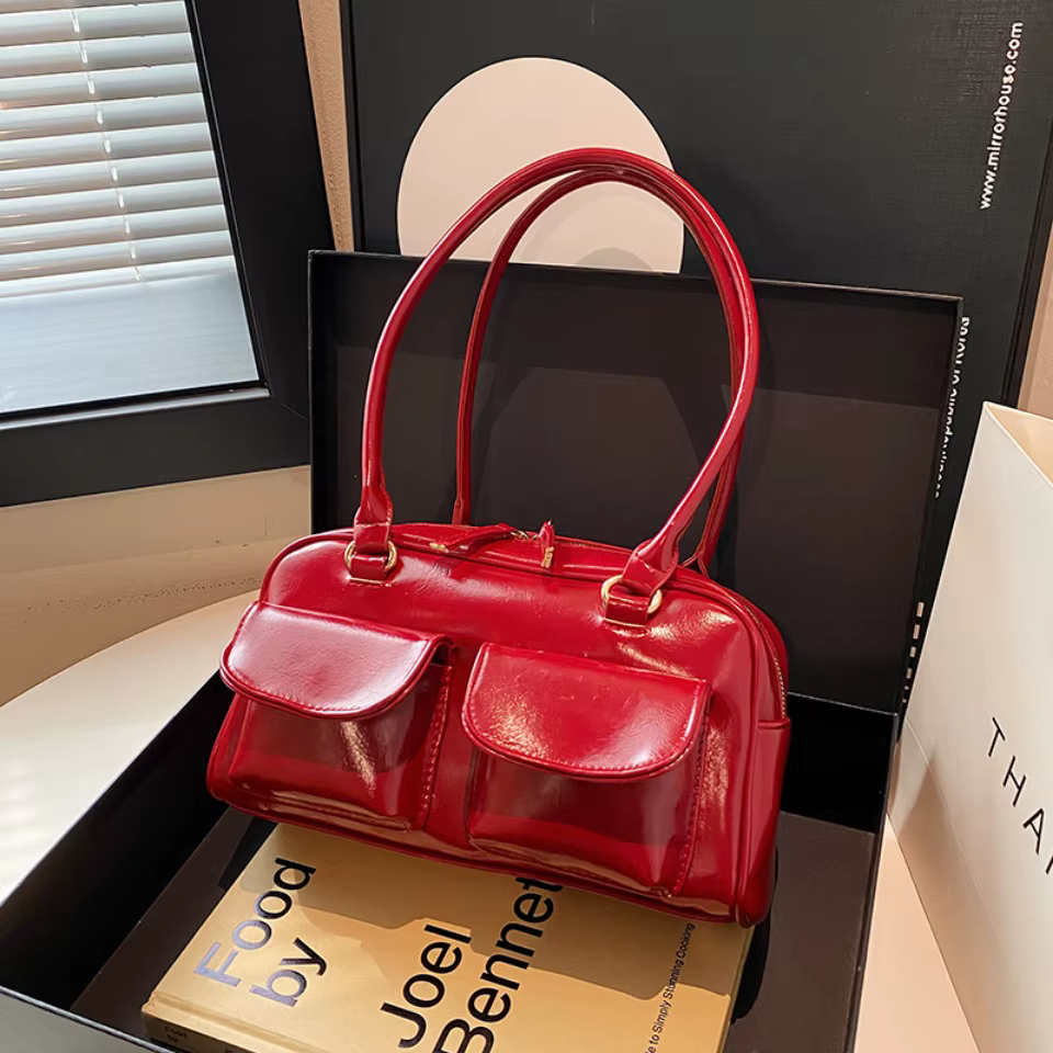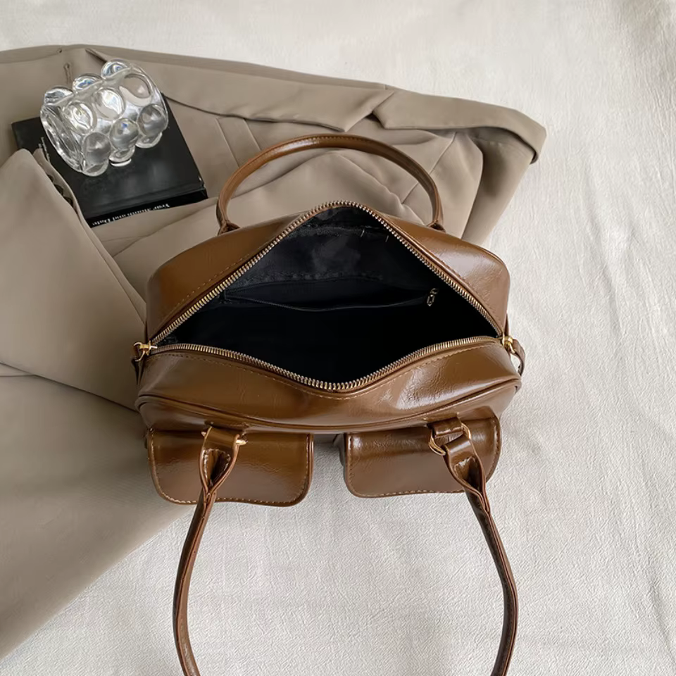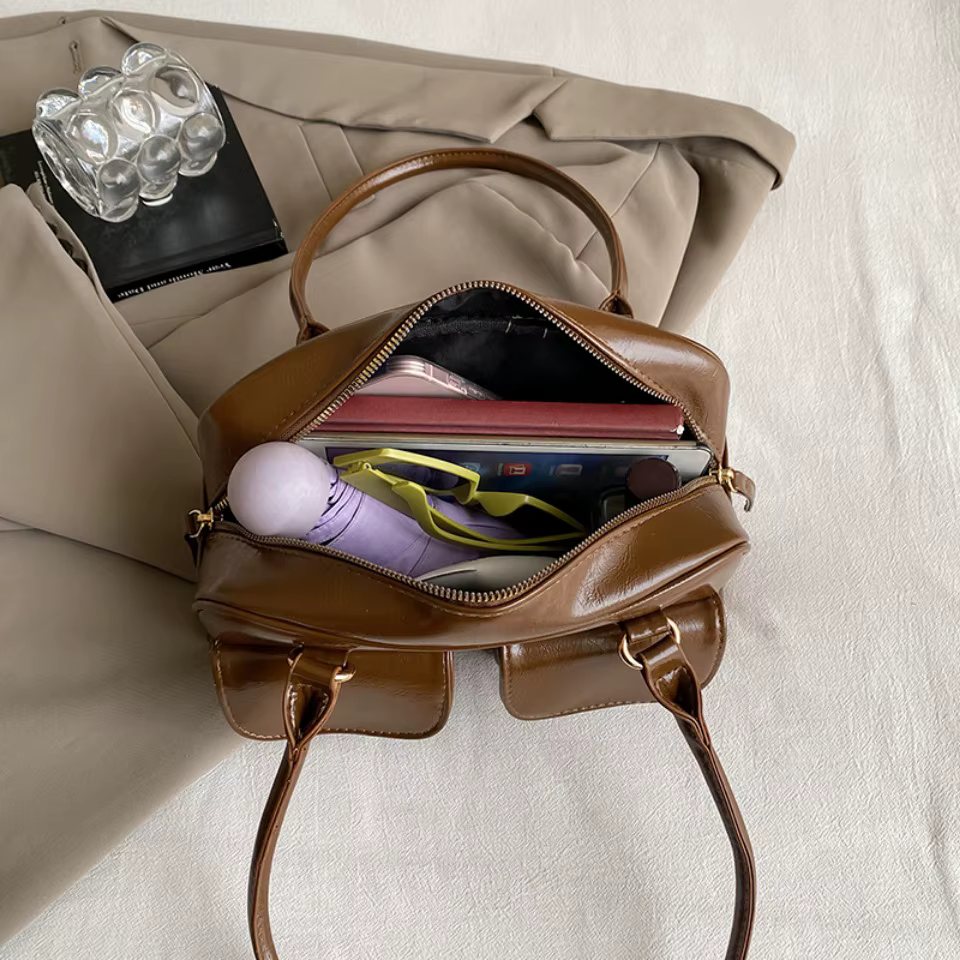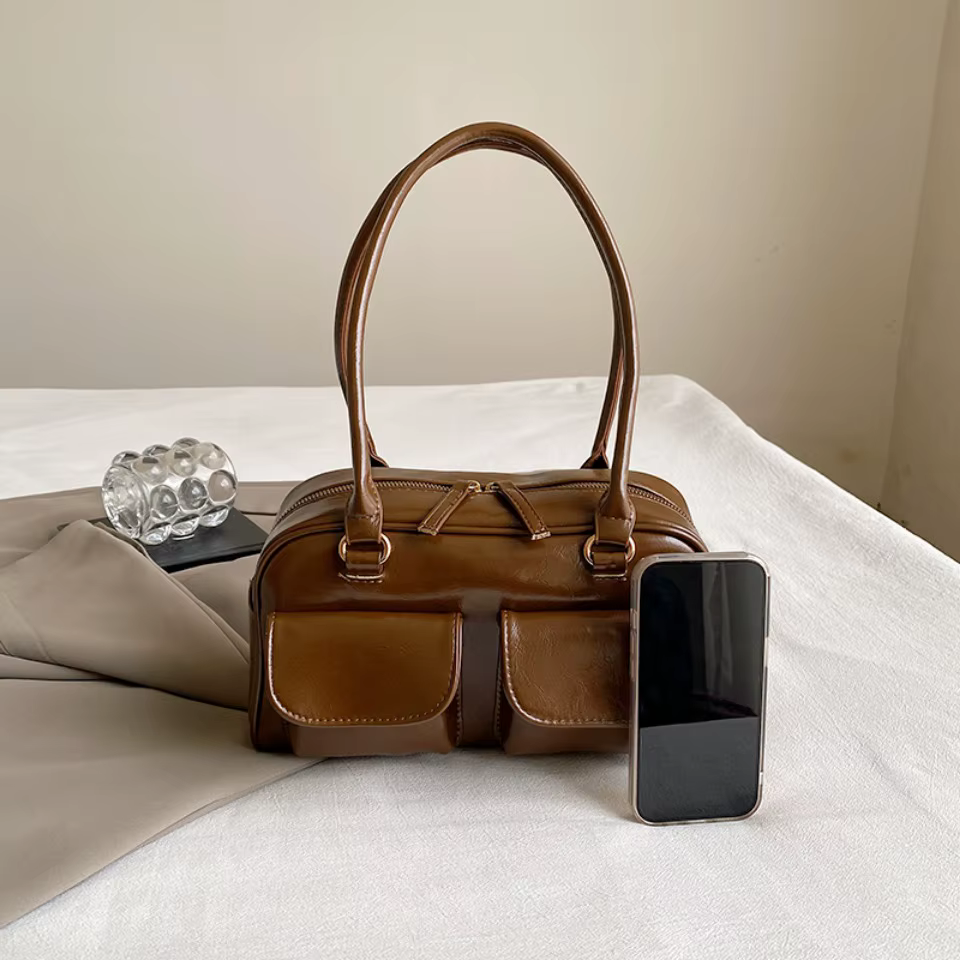 Vintage Women Business Shoulder Bags Simple Ladies Commute Tote Bag Pu Leather 2 Pocket Chic Female Underarm Hand Bag Handbags