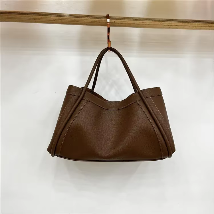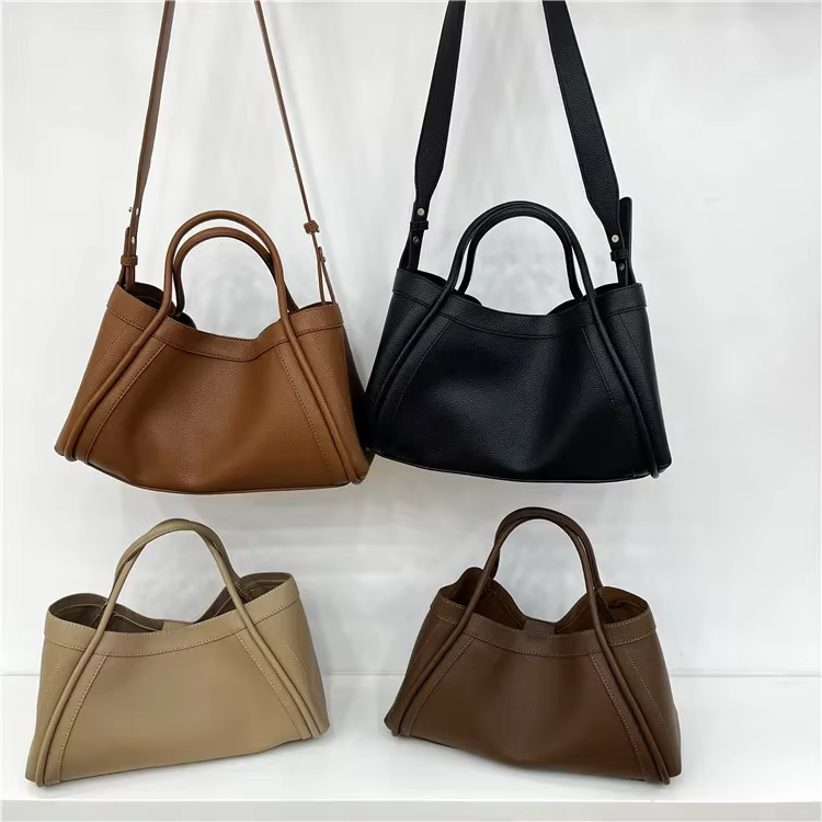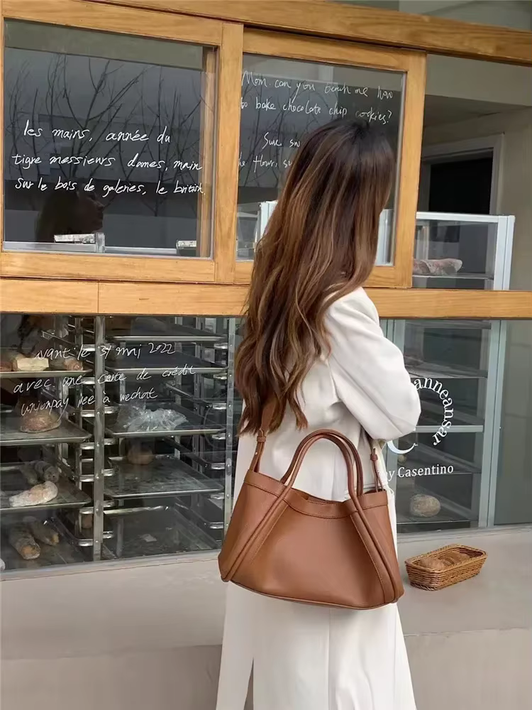 Simple Solid Soft PU Leather Large Capacity Woman Portable Basket Travel Tote Wide Shoulder Strap Crossbody Bags Matching Purse