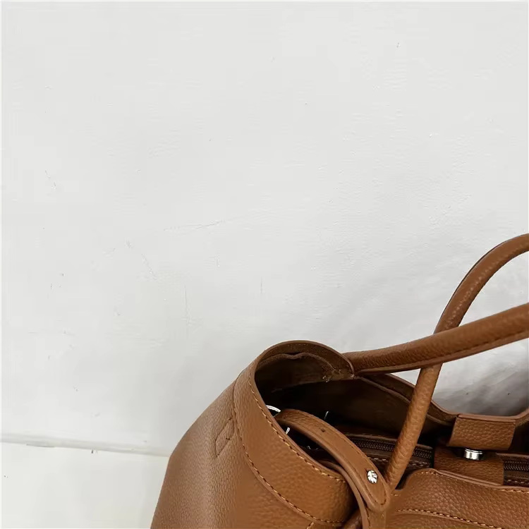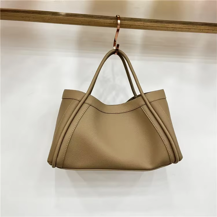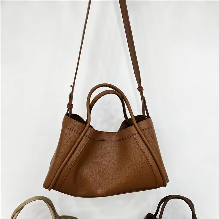 DetailSimple Solid Soft PU Leather Large Capacity Woman Portable Basket Comfortable Wide Shoulder Strap Crossbody Bag Pouch